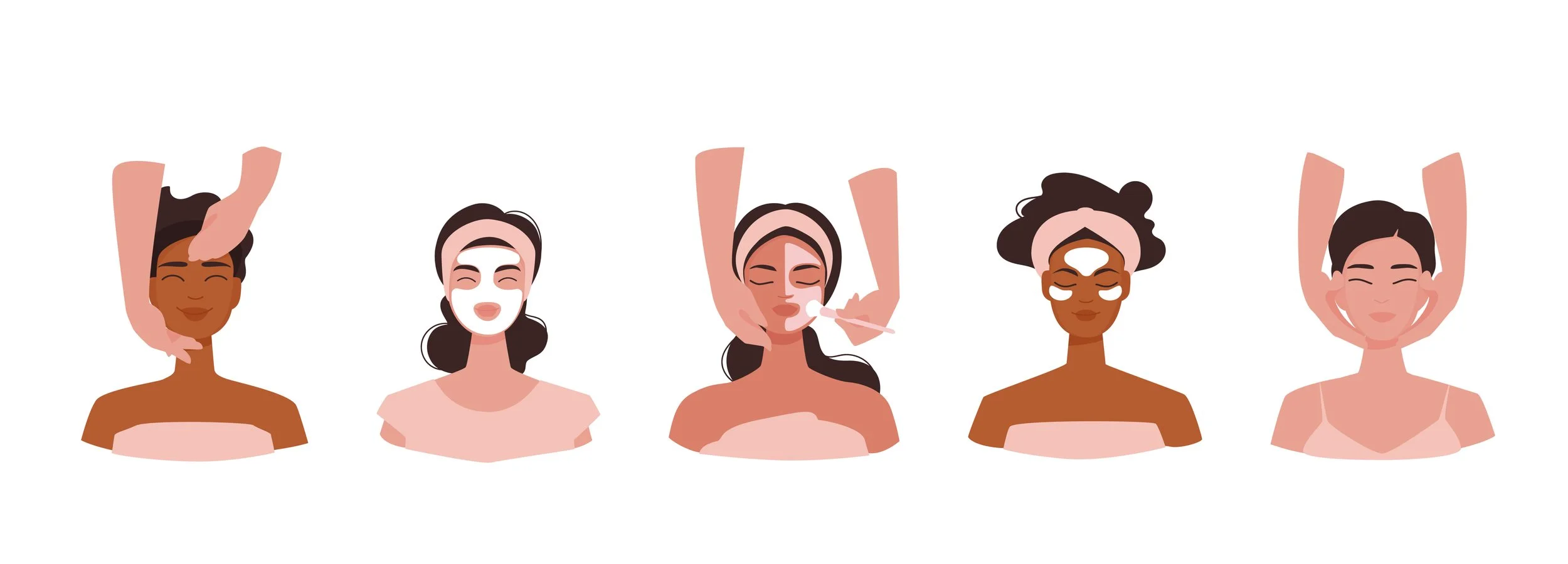 Each facial begins with a skin consultation, followed by double cleansing, exfoliation, extractions (if needed), a customized mask, serum, moisturizer, and SPF. Every step is tailored to your skin type and concerns.